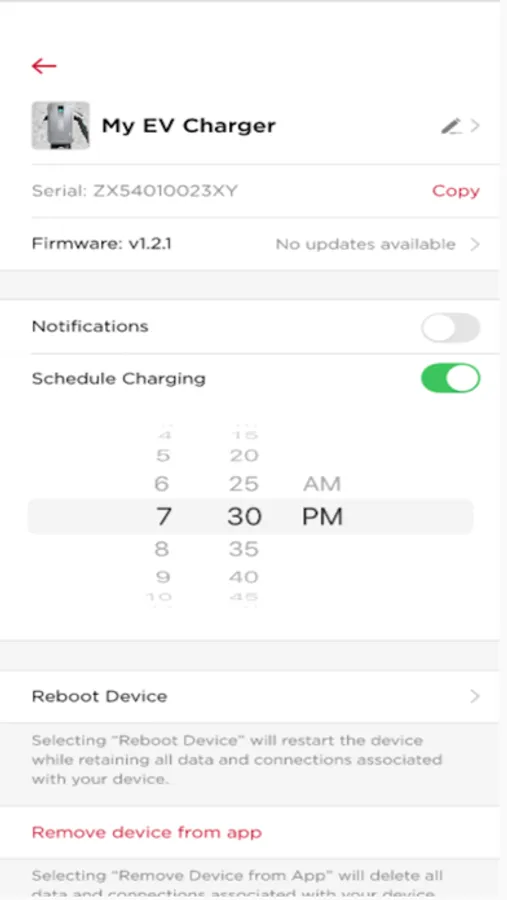 For EV chargers, the app monitors: