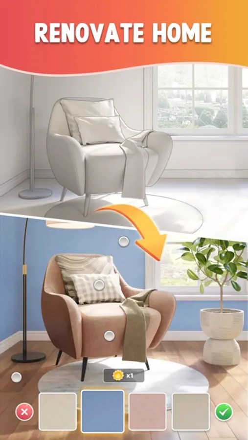 Pass levels to win coins for room decoration and renovation.