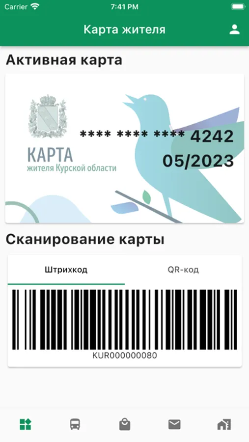 Приложение сервиса Карта жителя Курской области. Просмотр подключенных услуг и льгот. История поездок с использованием транспортной карты