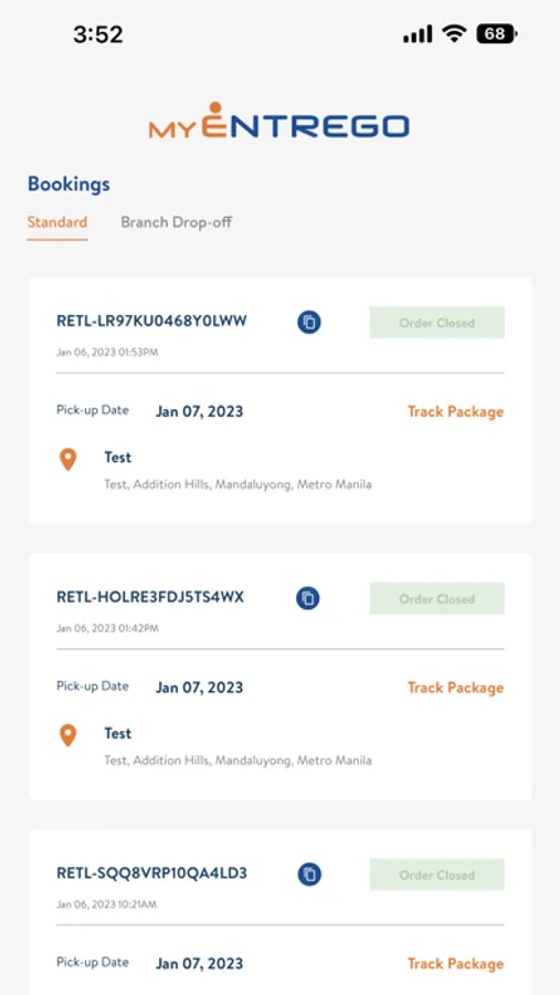 myEntrego's courier and express parcel management is operated by Entrego Express Corporation.