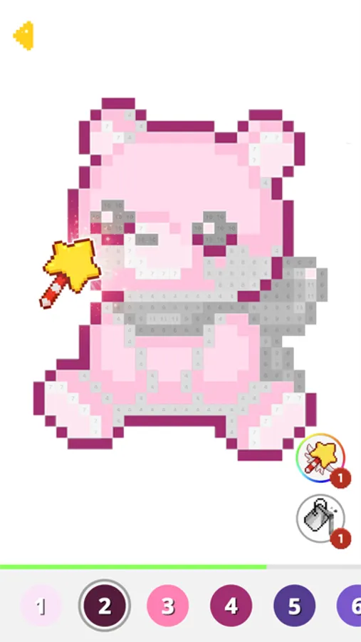- Pick Color Bucket to quickly fill areas with colors or Magic Wand to paint by number a range of cells of the same color.