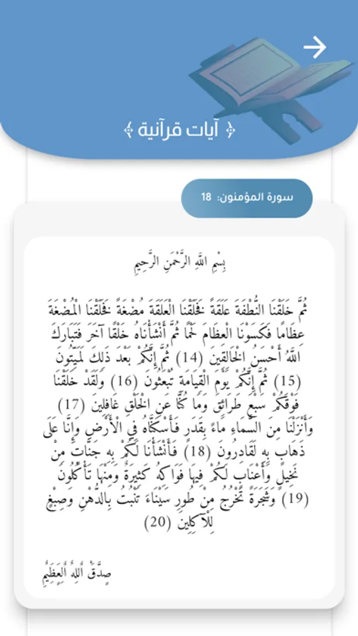 يتضمن تطبيق كل يوم اية القرآن الكريم مع امكانية البحث بالاضافة إلى إشعارات بالآيات والأحاديث والأدعية تصل يوميا في اوقات محددة كما يمكنك من خلال التطبيق الحصول على اشعارات تنبيه بمواعيد الصلاة