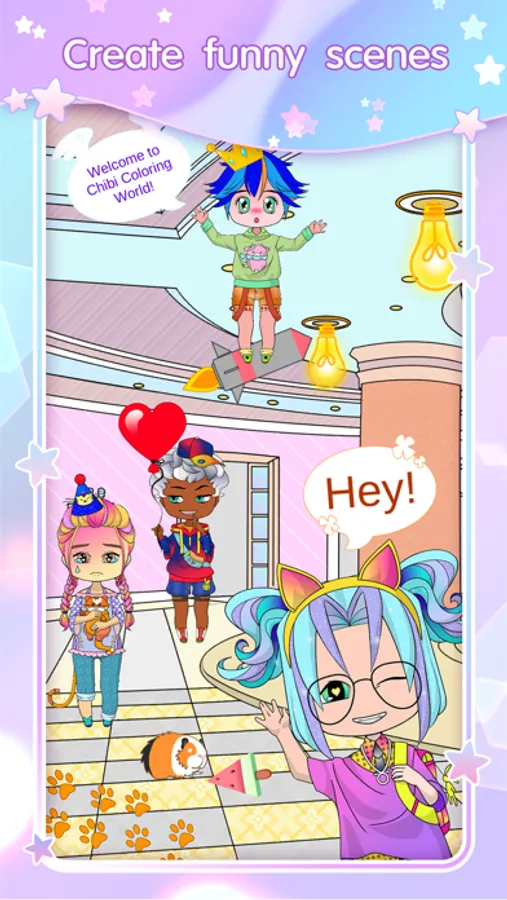 Create gacha coloring pages and make glitter wallpapers in girly games. Color and paint different backgrounds, make chibi dolls, change their sizes and place them on the pictures. This painting game lets you reenact the scenes from your favorite manga and anime game or series. After designing your characters or complete doll makeover, enter the picture studio and arrange your pastel dolls on it.