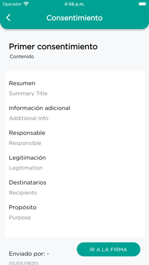 Desde el panel de Centro los administradores podrán generar textos legales de este tipo y asignarlos a los clientes que consideren haciéndolos requeridos o voluntarios. Los usuarios tan solo tendrán que hacer login en la app (con los datos de acceso que facilita el centro) y allí encontrarán los textos o consentimientos para firma.