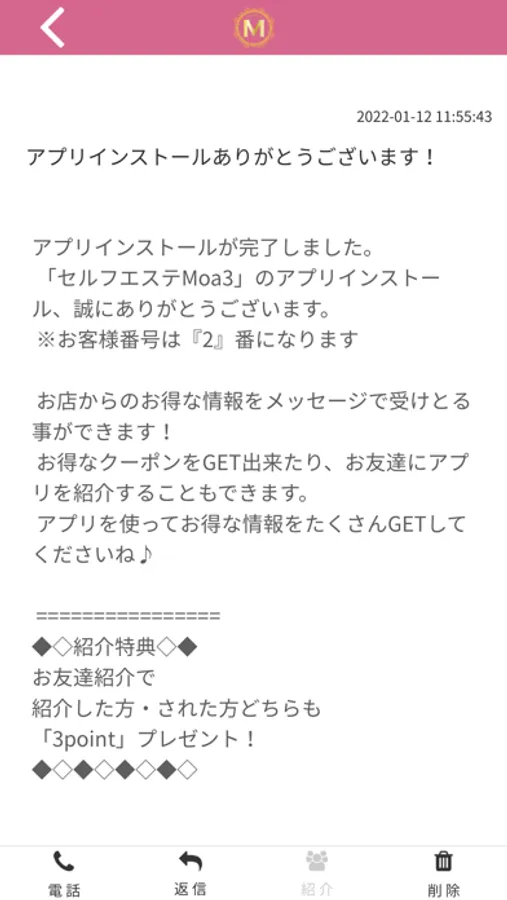 Moa3のアプリをSNSを通じてお友達に紹介する事ができます。