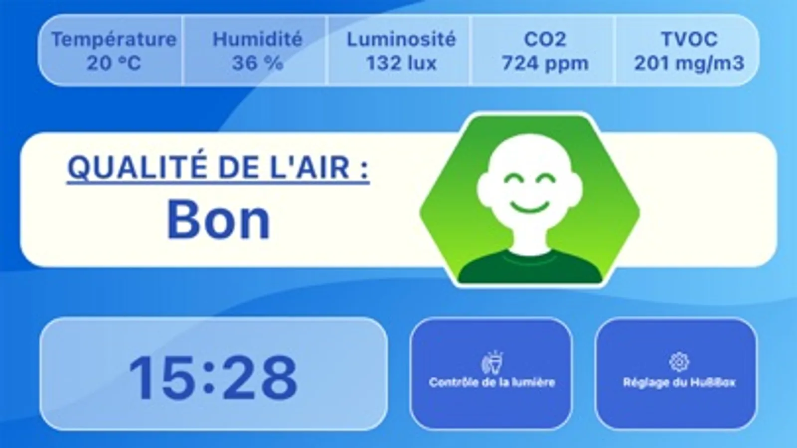 L'application LUMI'AIR vous permet de contrôler en temps réel la qualité de l'air présent dans votre pièce équipée d'un HuBBox. Elle permet également de contrôler à distance et sans fil les luminaires de la gamme Maestro™.