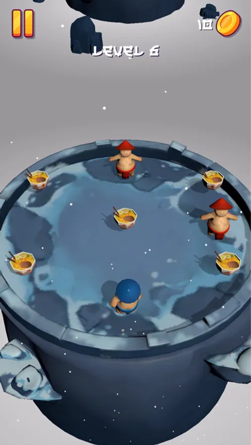 Eat the meals on the arena, grow your belly and kick off your opponents to win!