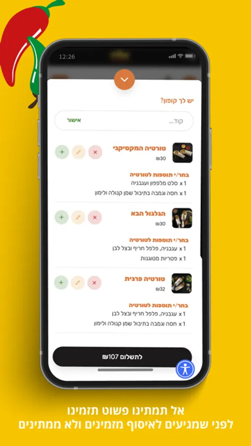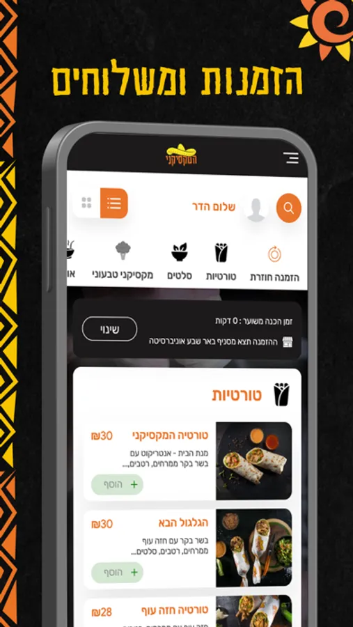 אפליקציית הזמנות של המקסיקני האוניברסיטה בן גוריון, מעכשיו ניתן להזמין בקמפוס לכל בניין ולכל כיתה וכמובן להזמין איסוף מהיר מהסניף מבלי להמתין בתור