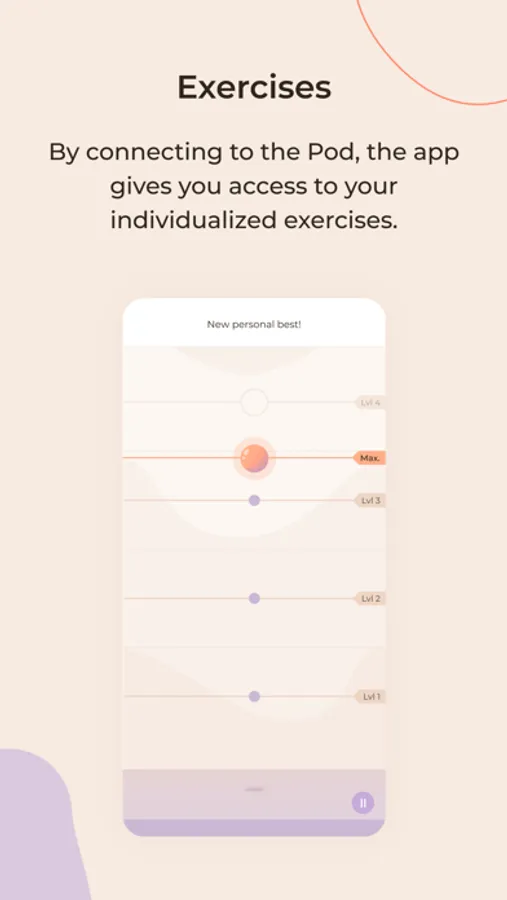 - Exercise sessions: By connecting to the pod, you will access your individualized pelvic-floor and functional exercises.