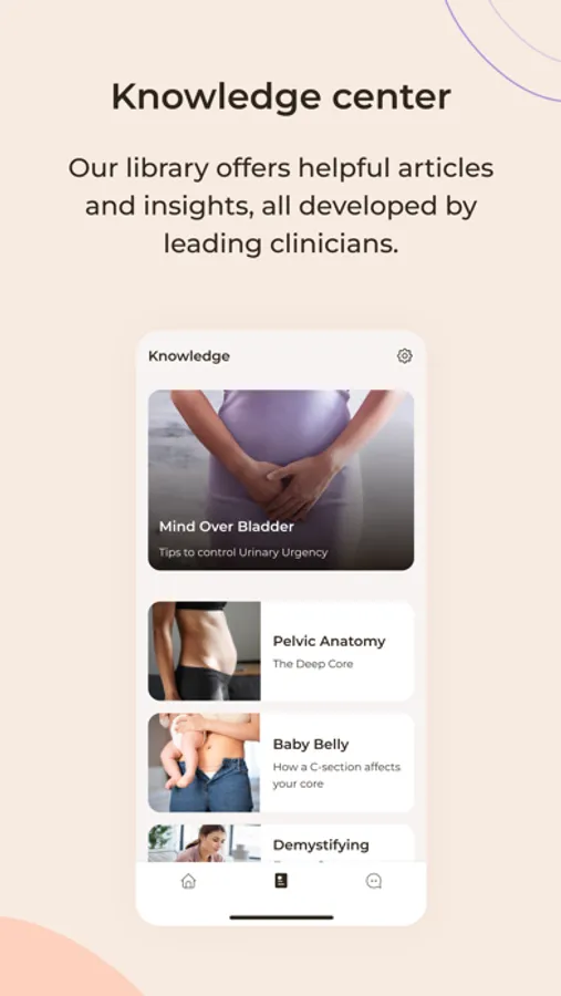 - Knowledge center: Access pelvic health education, lifestyle modifications, and cognitive behavioral strategies, developed by leading clinicians.