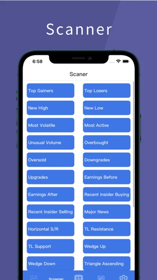 We provide the most common stock selection criteria for you to choose from, and you can quickly select stock classifications through the options in the scanner