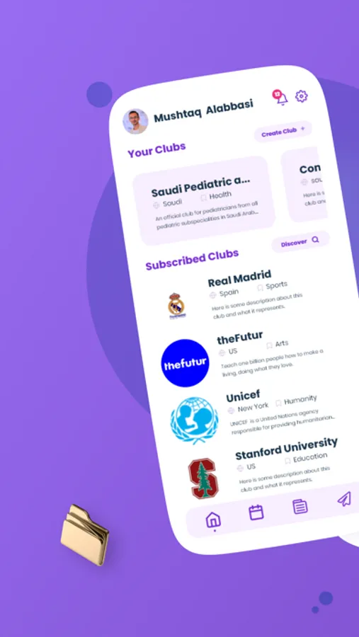 You can download the application, search for clubs based on your area of interest and follow them, to see the latest news and articles on an ongoing basis, follow the calendar of your club's activities, and interact with your club using many other features.