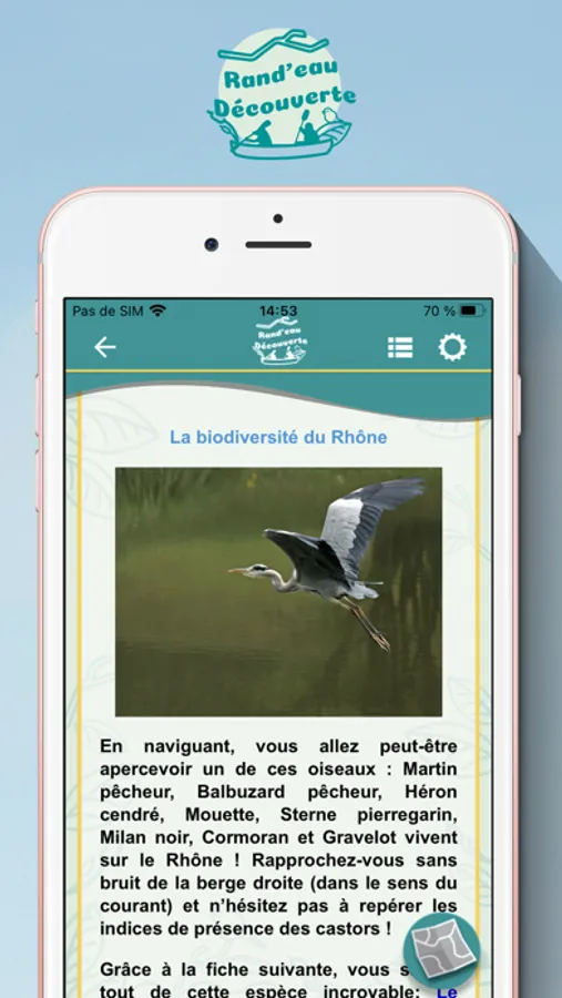 Navigate to discover the rich environement and cultural history surrounding the Rhone ! Enhance your descent with games and facts along the way.