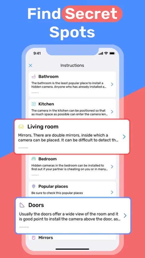 You have access to a Wi-Fi network scanner, a Bluetooth device scanner, hints on which hidden places it is advisable to check unwanted devices and a knowledge base about these places.