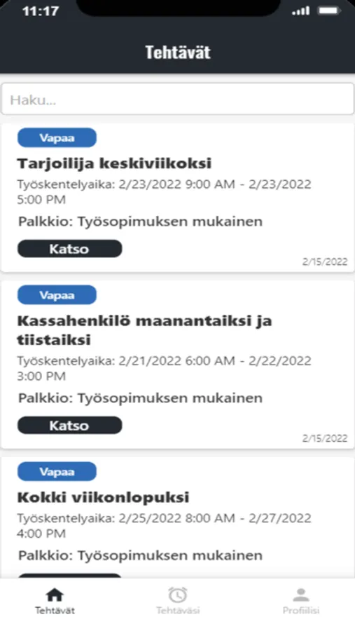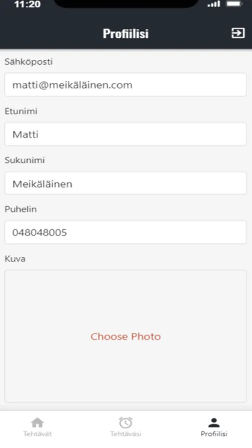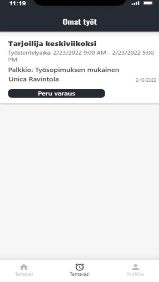 Helppokäyttöinen sovellus, jossa työntekijä voi luoda profiilin.