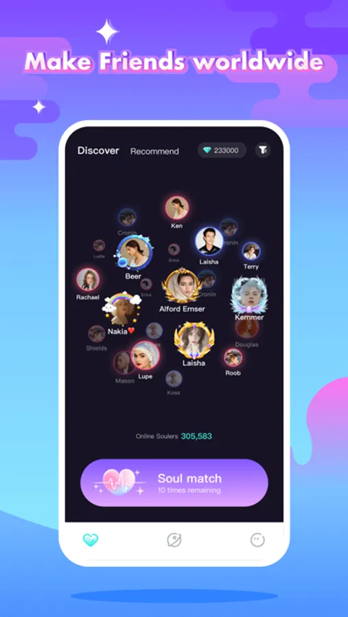 100% real male female friends, no bots, no fake profiles, no spam. Recommend new friends carefully for you.