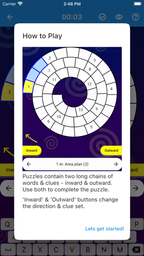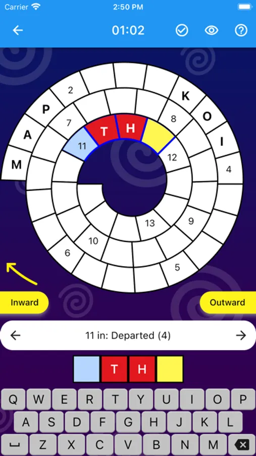 Players can swap between viewing the inward (clockwise) clues and the outward (anticlockwise) clues.