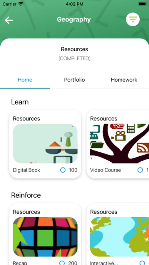 Reinforce comprises conceptual videos and daily recap cards aimed at supporting learning.