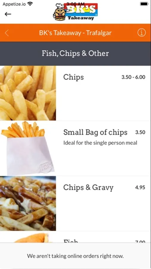 BK’s Takeaway is a locally owned and operated Fast Food Venue. It specialises in all your quick bite requirements such as Hamburgers, fish n chips, Souvlaki and sandwiches. With a great ready to go selection. Delivery available at Trafalgar Friday, Saturday and Sunday nights to the 3824 area.