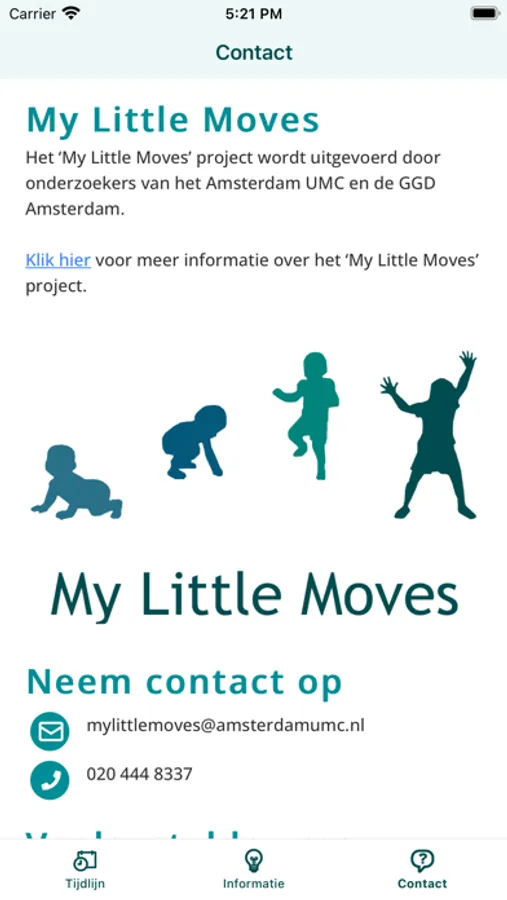 Deze app is voor ouders/verzorgers van kinderen van 0 tot 4 jaar, die deelnemen aan het ‘My Little Moves’ project. Fijn dat u mee doet!