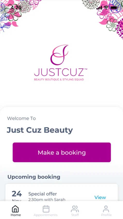 The Just Cuz Beauty app makes booking your appointments and managing your loyalty points even easier. You're just a few taps away from feeling good and looking great!