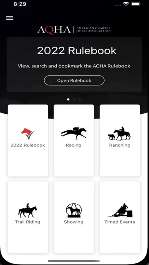 Take the AQHA Rulebook on the road with you with the AQHA Rulebook app. Use the app to keep rules within reach when attending shows, races and additional equine events. Use the calendar feature to find upcoming AQHA events and shows.