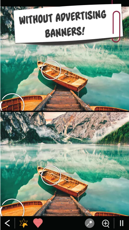 Find the differences 1000 + is a free puzzle game known as “Spot the difference” or "Find the differences" where you have to find five differences between two images otherwise identical.