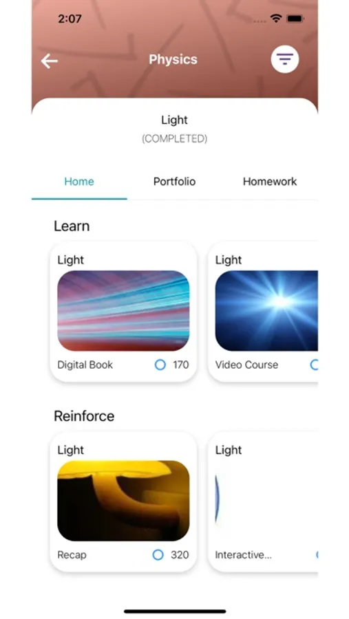 Reinforce comprises conceptual videos and daily recap cards aimed at supporting learning.