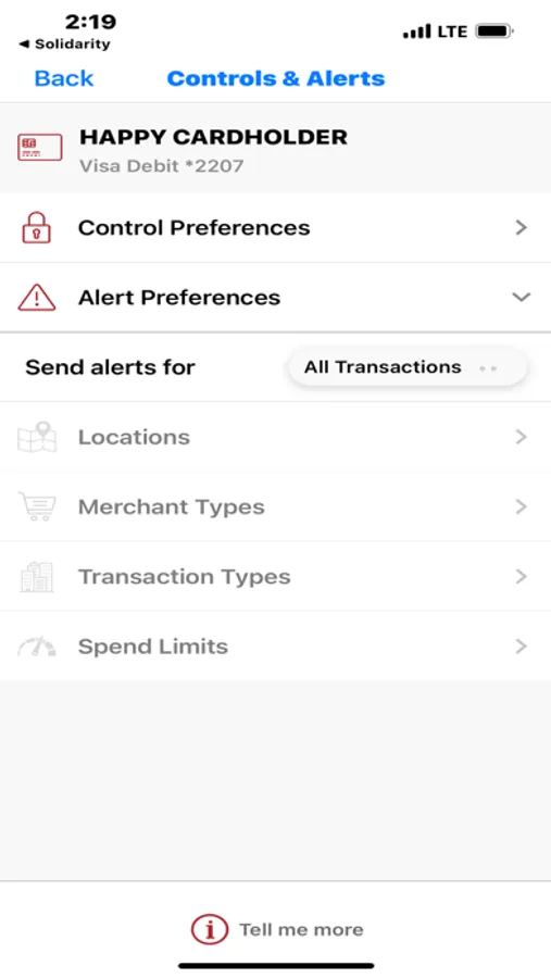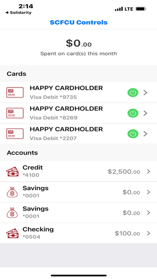 Solidarity FCU Card Controls App allows our members to turn their Debit cards on or off in seconds safely and securely 24/7 in scary circumstances where you don't know where your card is. Stop fraudulent activity before it happens with Alert features. GPS capabilities can either limit where your Debit card is being used, or assure you it can only be used in your presence. Turn your Debit card into an active budget with dollar amount threshold limits with categories and alerts to let you know you've reached your allocations. Manage how, when, and where you use your Debit card while traveling or shopping. Get the power to authorize transactions based on location, transaction type, merchant type, and amount. Set dollar limits for transactions and receive alerts upon reaching those set limits. Get the power to deny a Debit card transaction. Receive Alerts when suspicious activity is suspected. Download SCFCU Card Controls today and utilize it in our Mobile App with your SCFCU mobile banking.