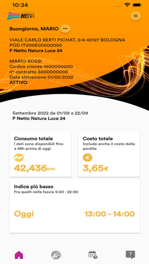 - Visualizza in home page i tuoi dati contrattuali e la sintesi dei consumi.