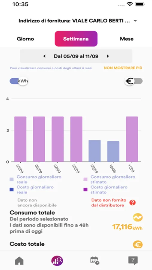 - Controlla l’andamento dettagliato dei tuoi consumi attraverso pratici grafici e organizzali per