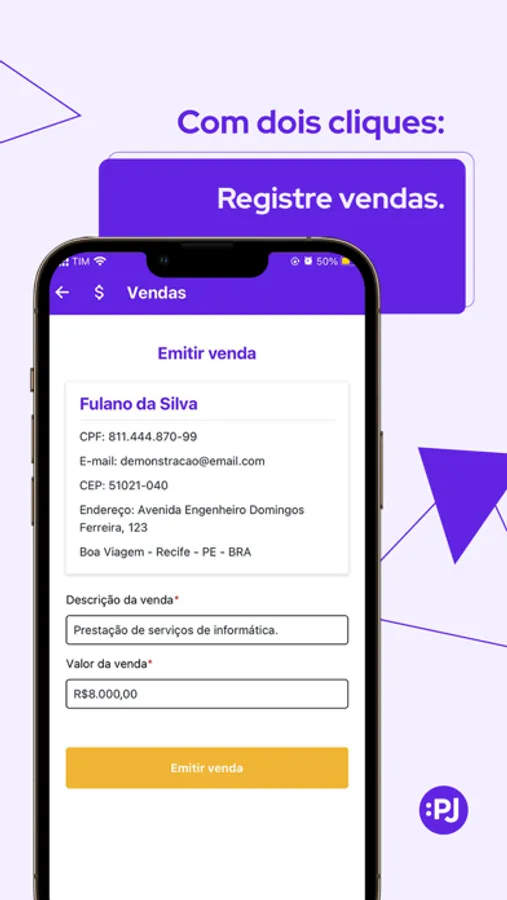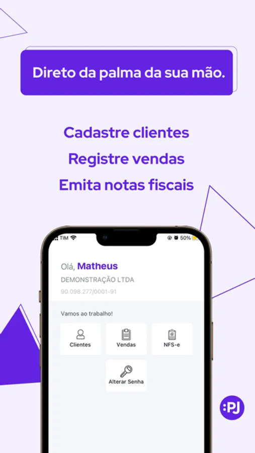 O Pjotinha serve para você controlar a sua vida PJ da tela do seu celular. Cadastre clientes, registre vendas e emita notas fiscais direto da palma da sua mão.