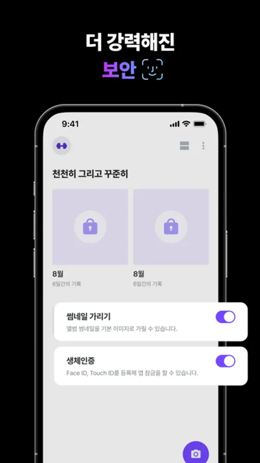 더이상 사진이 서버에 업로드 되지 않아요. 생체 인증, 프라이버시 모드를 통해 보안을 더욱 강화했어요.