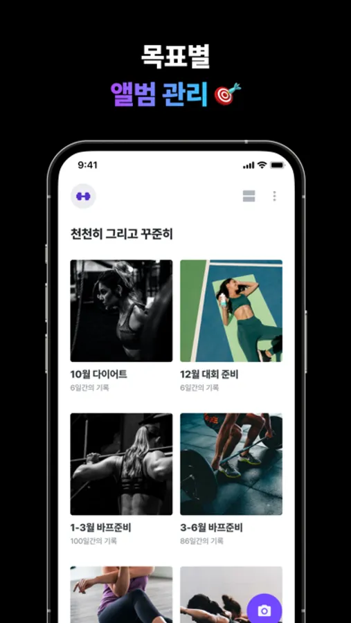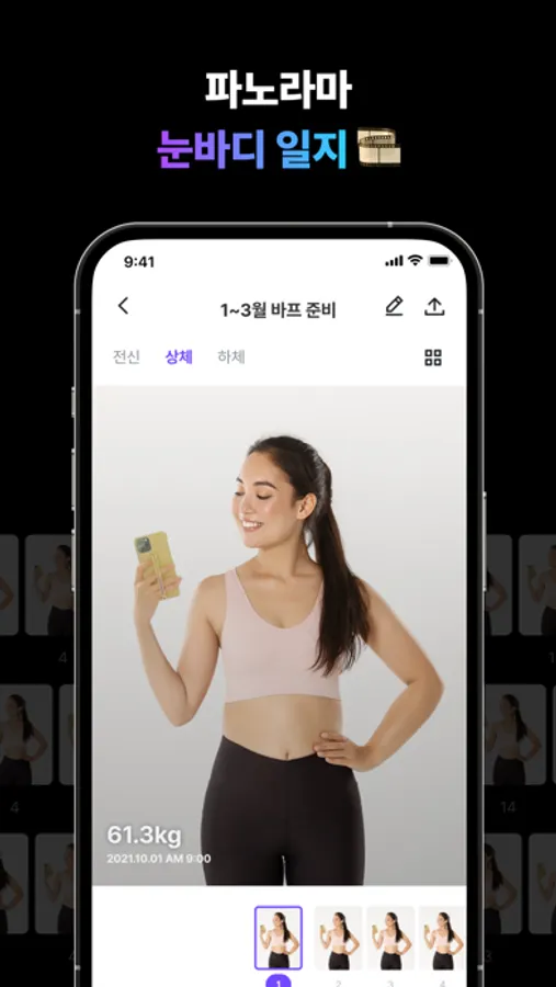 차곡차곡 모아둔 앨범을 넘기면서 전신 / 상체 / 하체별로 변화된 모습을 관찰해보세요.