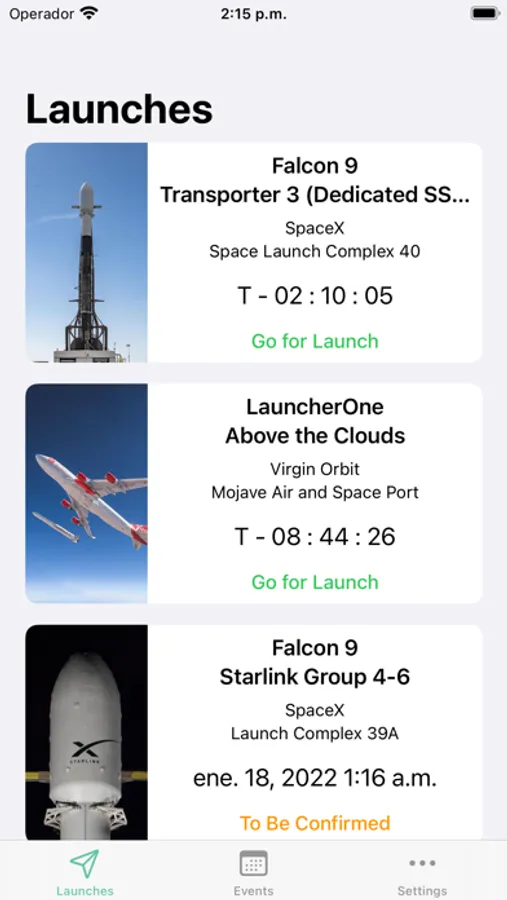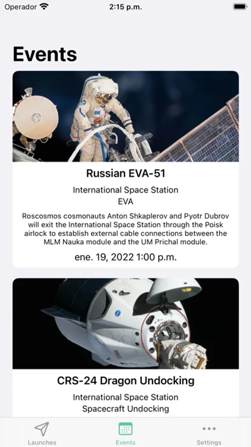 Get a list of rocket launches and space events from different companies around the world.