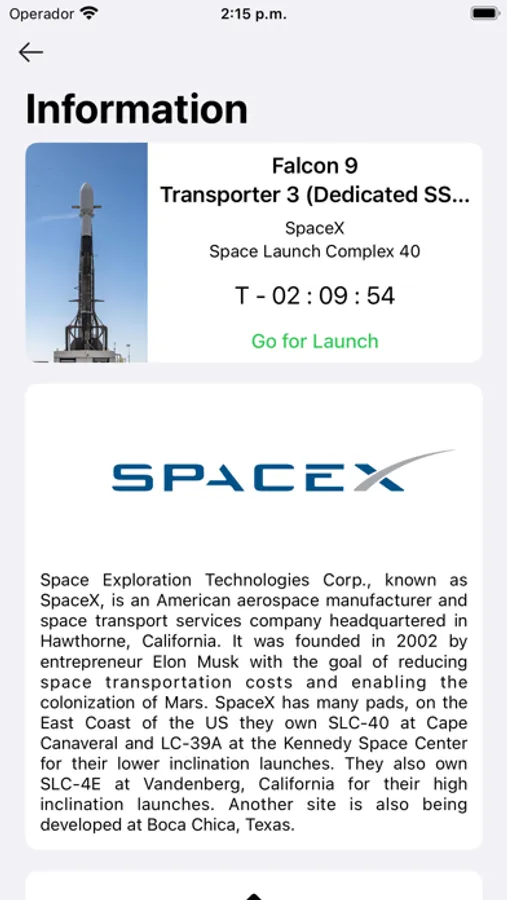 · Detailed information about launches, including company, mission and launch pad data.