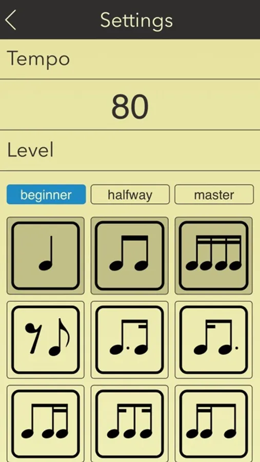 In the application settings, you can choose the level of difficulty of tasks and the musical instrument you play. You can choose guitar, piano, drums.