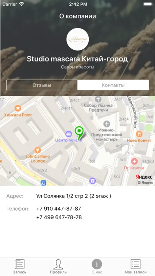 - Возможность оставить отзыв и прочитать отзывы других клиентов салона