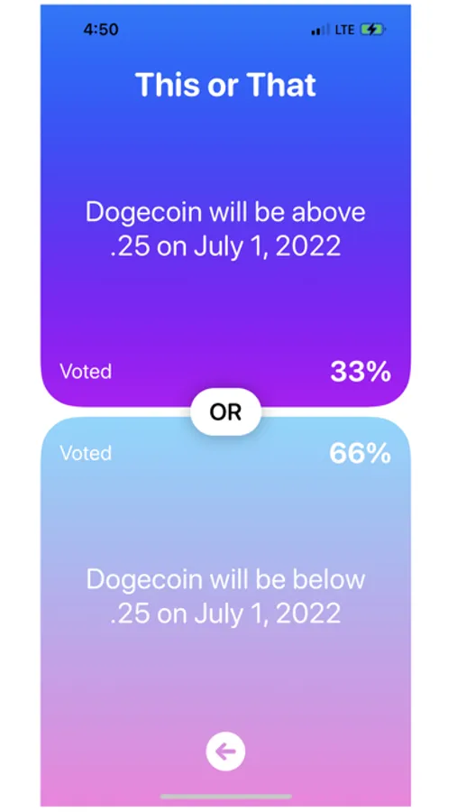 This or That Would You Rather is not only a fun way to pass the time but also a great way to see how the public thinks. See the public sentiment on the stock market, sporting events, products and also random questions generated by the App users.