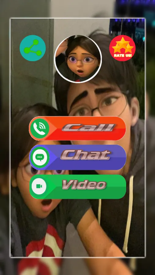 Hi guys and welcome to this funny app call and chat video toy,this application is simulation a trick chat messenger with a joke call and video call,Enjoy your time.