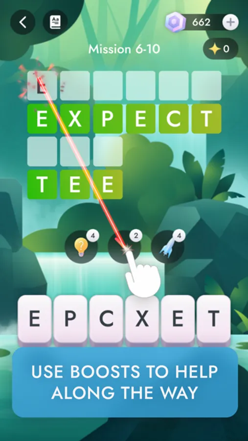 • Lasers zap and reveal a specific letter of choice in the puzzle. Lasers can be purchased using Coins