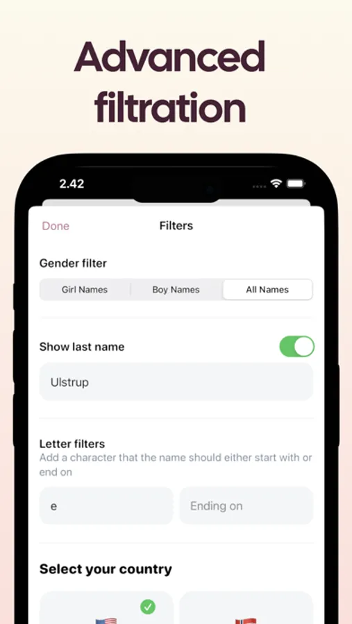Say goodbye to endless scrolling and searching, and hello to the best Baby Names App on the market. Whether you're looking for unique, traditional, or modern names, we have it all. Our extensive database includes names from various cultures and backgrounds, making it the perfect tool for parents of different nationalities.