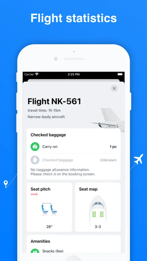 Flight statistics: Check baggage allowance, delay information, aircraft models, and even who’s running your flight. Who knew plane tickets could come with so much? We do more than providing deals on flight tickets, we give you the details.