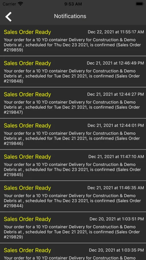 Customers of Starlight Subscribers will use the app to specify the type of container they want, the date, the location at their site and upload contact information for the person available to answer any questions at the time of service. When a Subscriber’s customer finalizes an order request, their credit card is authorized, but not charged. The order request details are relayed to a company Customer Service Rep who reviews the order. The CSR may speak with or chat via the app with the customer to finalize details. The CSR then confirms availability of the service to match the customer order request details, and the CSR stages the pending payment to be run on a credit card the day before the service is rendered. The customer receives an order confirmation in the app. This process is identical to the manual, phone-based order system the company uses today.