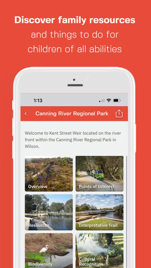 The Every Kid in the Park app provides resources and support to families of children of all abilities in accessing and enjoying the outdoors areas around Western Australia.