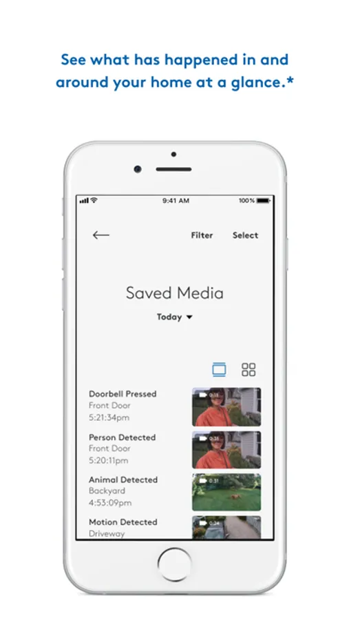- View event video history so you can see what your cameras captured if you’re home or away*