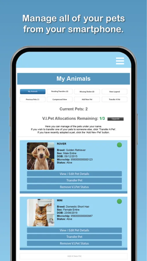 - Update your owner details within seconds ensure you can be contacted if your pet goes missing.