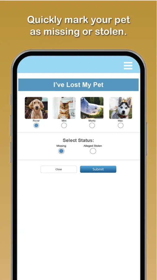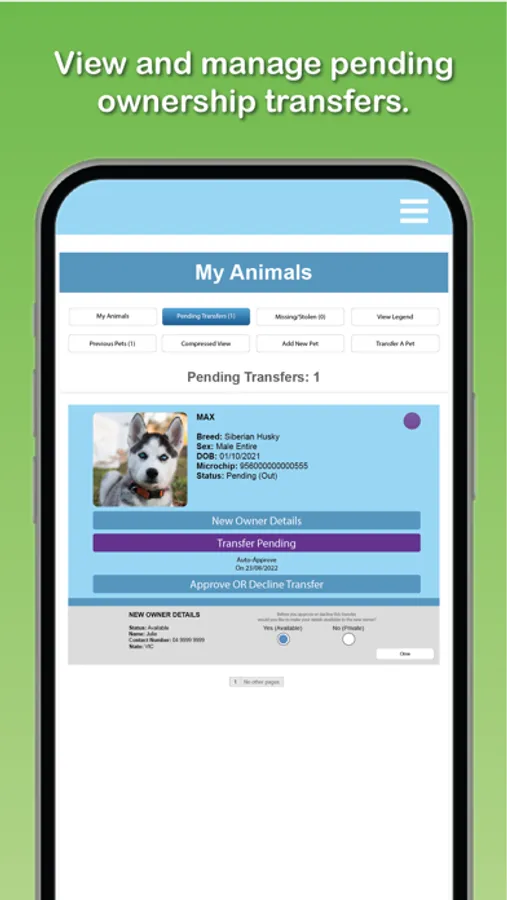 - Quickly mark your pet as missing or stolen to alert vets and council rangers when they access your pet's microchip details.