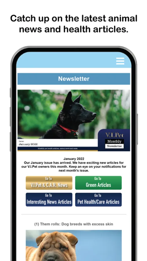 - Read our monthly newsletter which includes animal news and pet health articles.