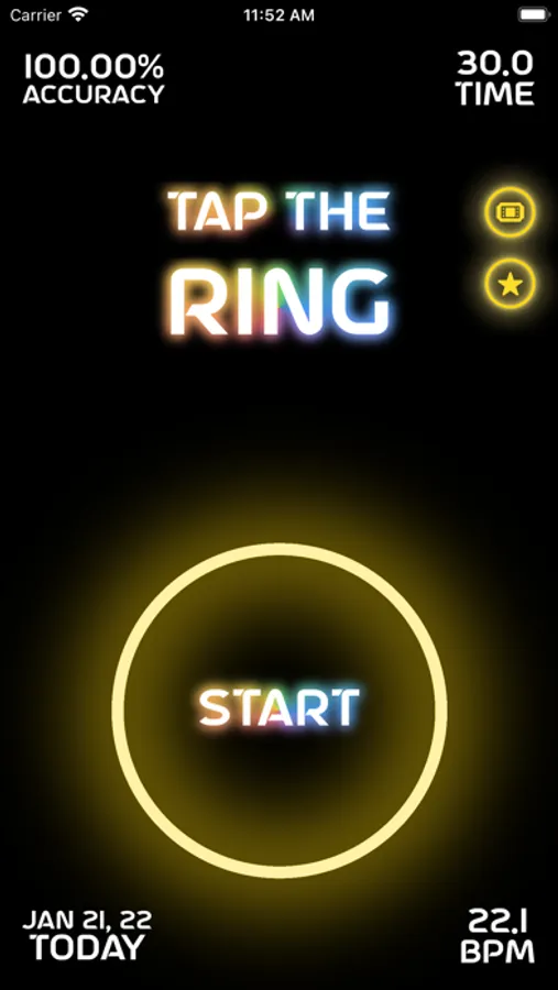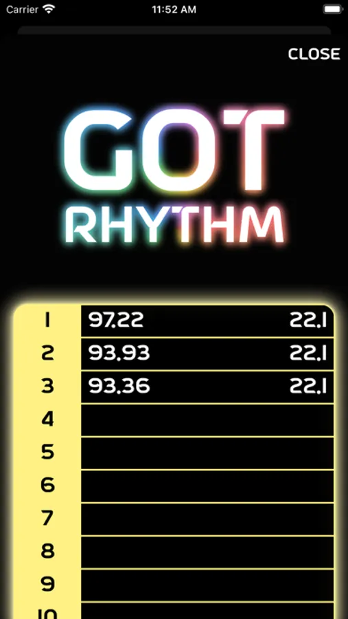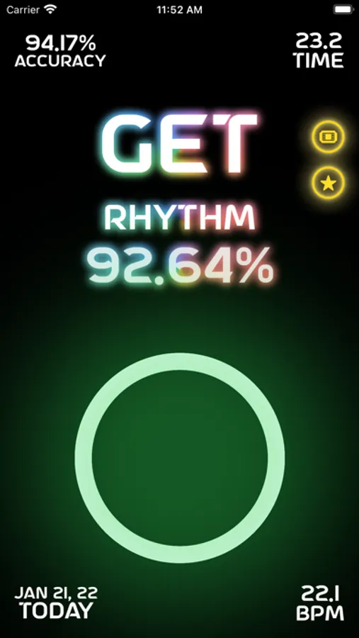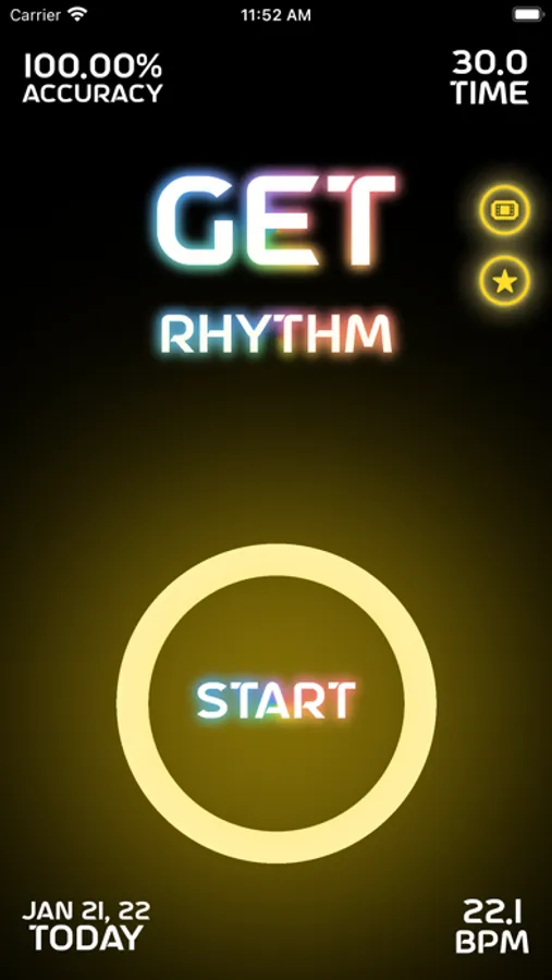 Get Rhythm is a game that challenges you to see how close to 100% accuracy you can achieve when attempting to tap on a particular rhythm.